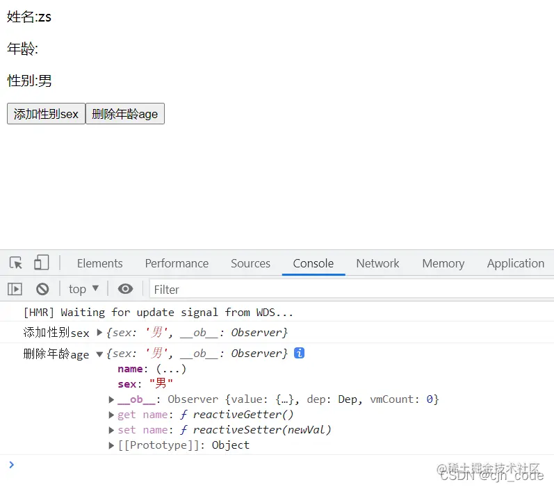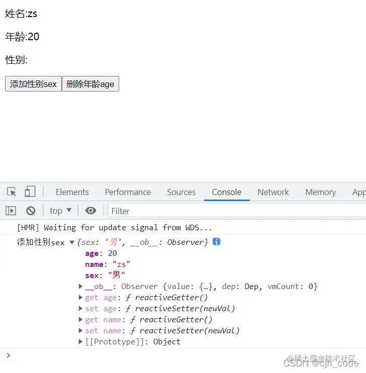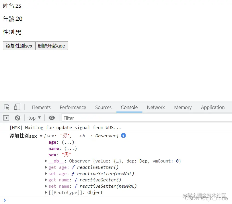 //this.$set(this.obj, "sex", "男"); //是响应式