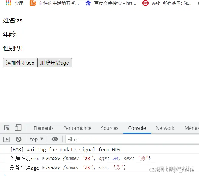 可以看出vue3中对象属性的增加和删除,界面会随之更新,这是因为vue2的响应式为object.defineProperty而vue3是proxy搭配Reflect
