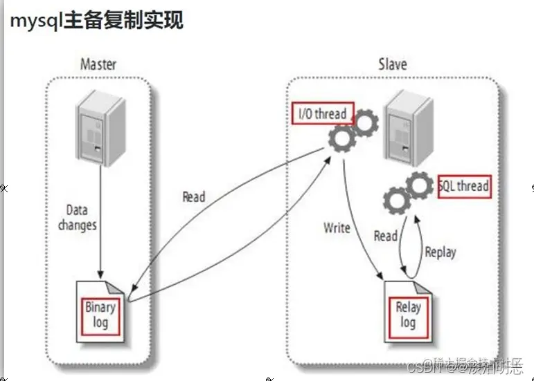 - MySQL Replication 在Master 端开启Binlog,Master 把它的二进制日志传递给Slaves来达到 Master-Slave 数据一致的目的。