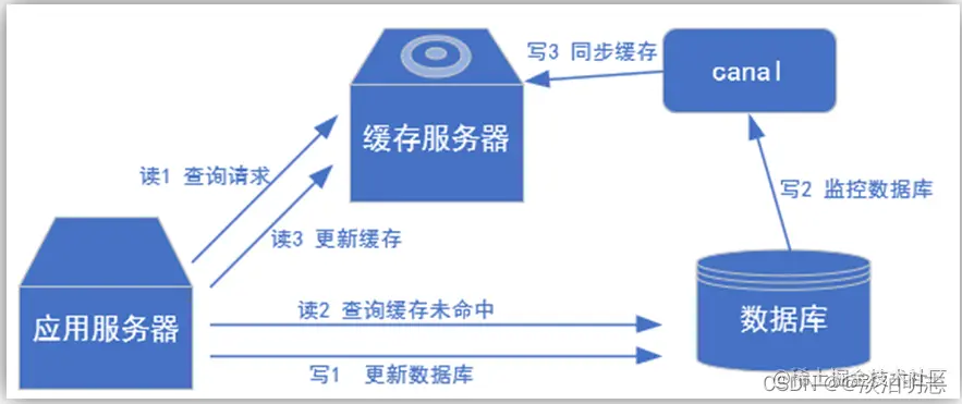 详细说明:当应用查询数据时,首先从缓存服务器中查询数据,如果缓存中没有就去数据库中查询。 在写入数据时,首先写入数据库,对数据库进行更新,然后写入监控数据库,最后同步缓存到缓存服务器中。