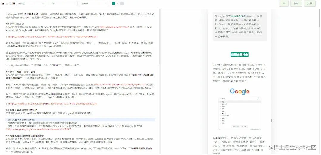 也就是说你只需要在 Markdown 编辑器上写文章,就能一键生成一篇样式简洁而又美观大方的微信图文,这就大大提高了你的效率,不用每天去排版了。