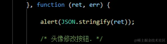 然后我们在回调函数function大括号里的第一行加一句代码,把ret对象转换为 JSON 字符串,就可以看出来按钮和代码的对应关系了。这里涉及到一点JSON的知识,如果不太懂的话,大家之后可以去了解一下。