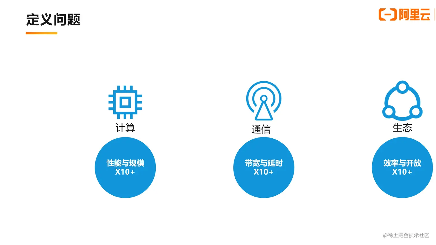 那么定义到问题层面,我们在计算性能和规模,通信带宽和延时,生态效率与开放程度上都有一个飞跃。