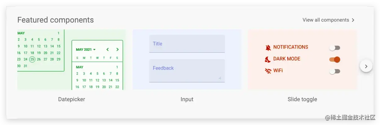 Angular 团队构建和维护的基于 Materal UI 设计风格的 UI 组件库,以帮助您构建自己的自定义组件。