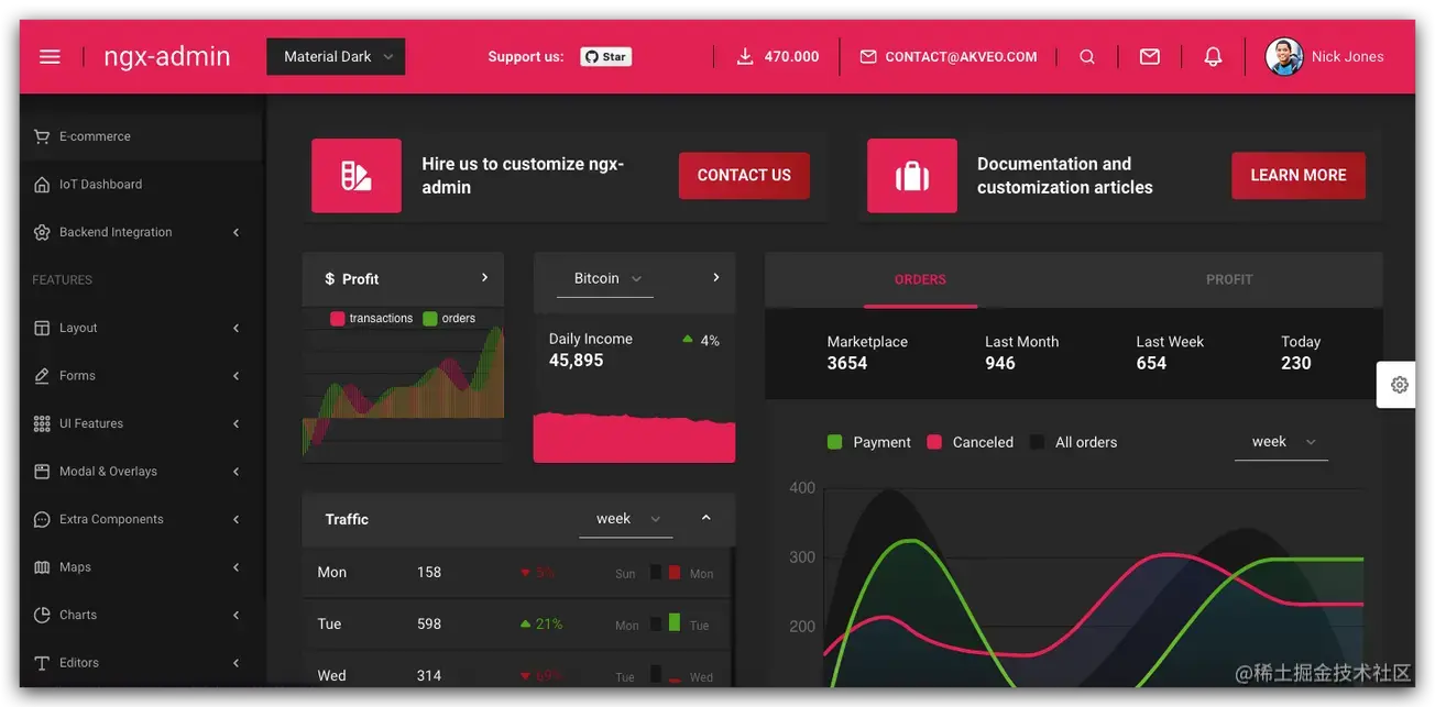一个好看的极简风格管理后台模板项目,有丰富主题的,部署方便,强推想要学习 Angular 的同学 pull 下来看看。