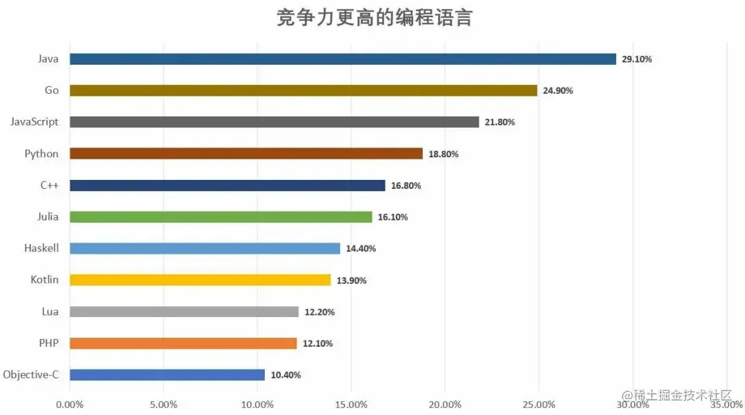 通过投票,我们得到了以下竞争力更高的编程语言数据: