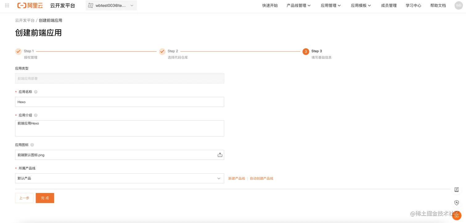 填写基本信息,完成创建。填写基本信息并点击「完成」。成功后进入到应用详情和部署界面。