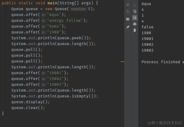 ma1xSize时,让其最多只允许存放maxSize - 1个数据元素;这种方法判空条件为: