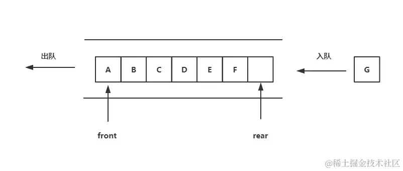 rear指向的存储位置中,使其成为新的队尾元素; - 再将