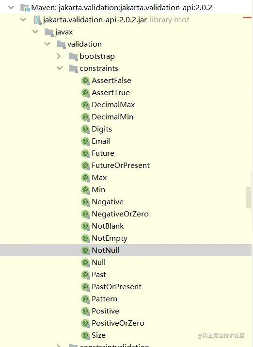 JSR303 规范默认提供了以下几种约束注解的定义。