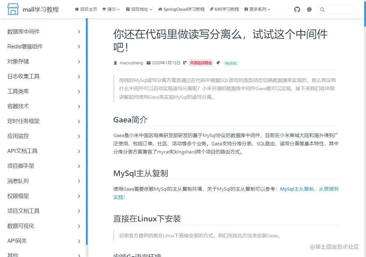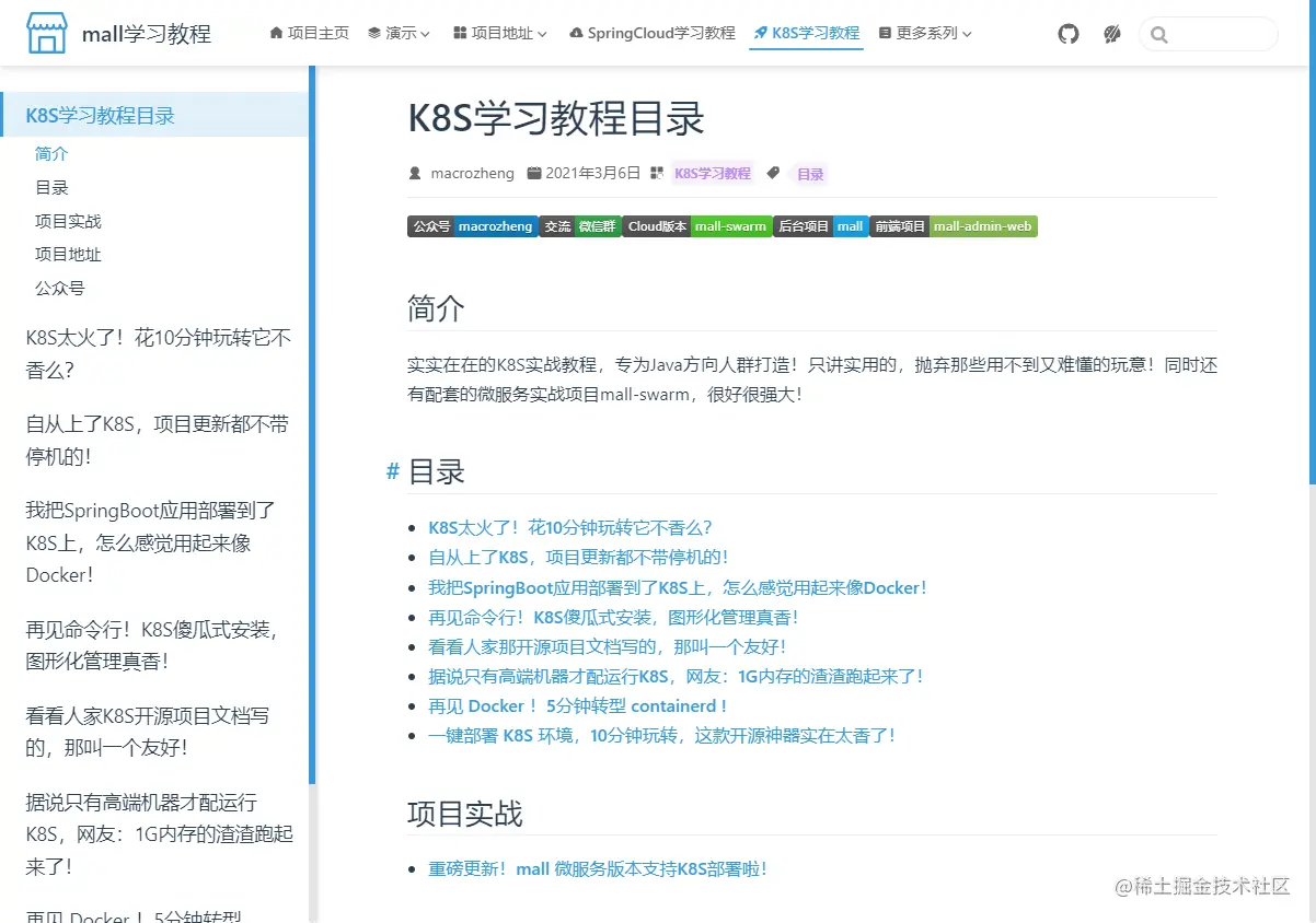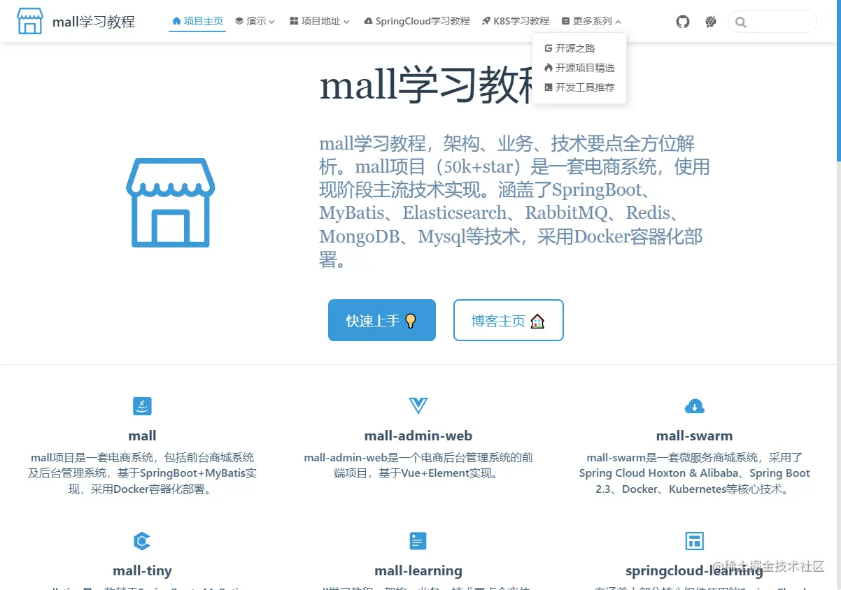 学习过我的开源项目mall的朋友应该知道,mall项目有个学习教程网站。由于目前已有