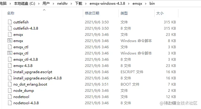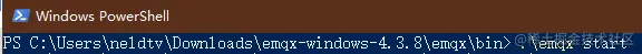 emqx-windows-4.3.8\emqx\bin目录(路径不要带有空格或中文) - Shift+右键在此处打开 Powershell 窗口,输入命令