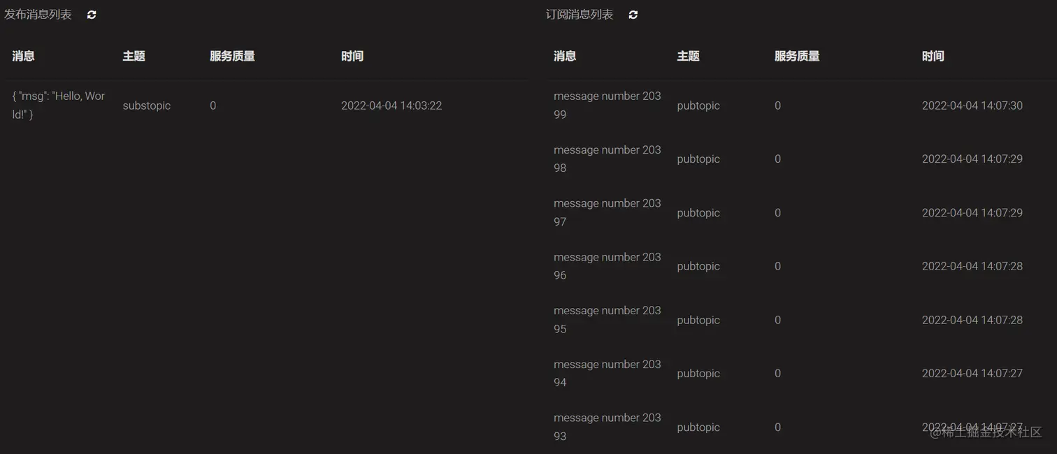 - 订阅主题和发布消息
