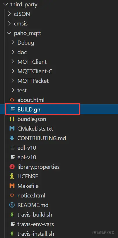 下一步,我们在 paho_mqtt 文件夹下面新建 BUILD.gn 文件,用来构建编译。