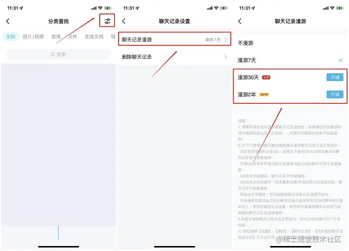 方法1:在手机QQ上开通聊天记录漫游恢复聊天记录