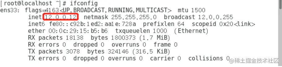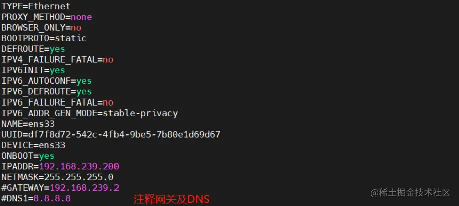 [root@localhost ~]# vim /etc/sysconfig/network-scripts/ifcfg-ens33 #编辑外网配置文件