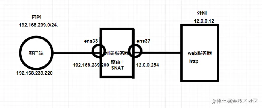 - 数据包从内网发送到公网时,SNAT会把数据包的源ip由私网ip转换成公网ip,当相应的数据包从公网发送到内网时,会把数据包的目的ip由公网转换为私网ip。