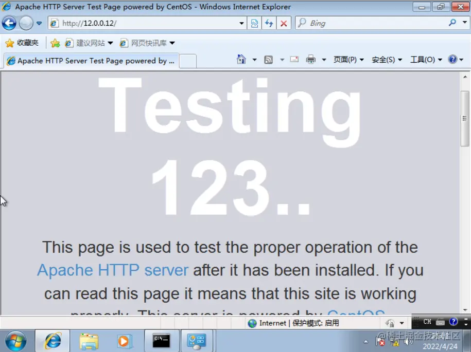 5.此时使用内网客户机浏览器输入http://12.0.0.12既可以看到外网的http服务页面