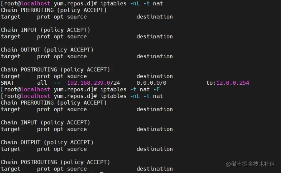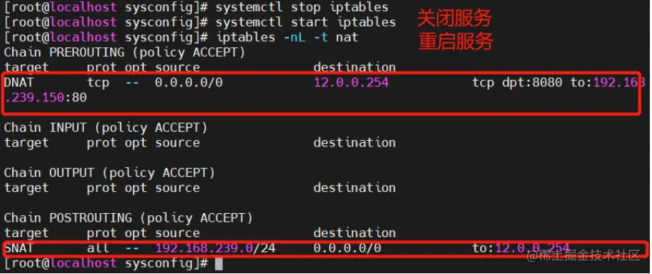 9.查看网关服务器的iptables规则并清除