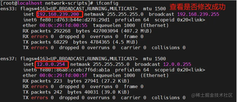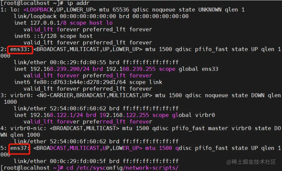 [root@localhost network-scripts]# vim ifcfg-ens33 #编辑内网配置文件