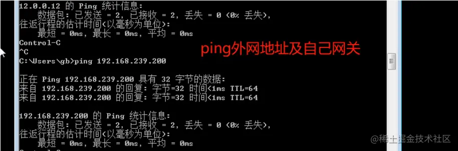 4.内网客户机ping外网服务器及自己主机