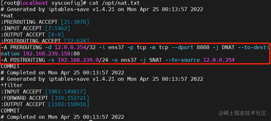 iptables-t nat -A PREROUTING -i ens33 -d 12.0.0.1 -p tcp --dport 250 -j DNAT --to 192.168.239.150:22