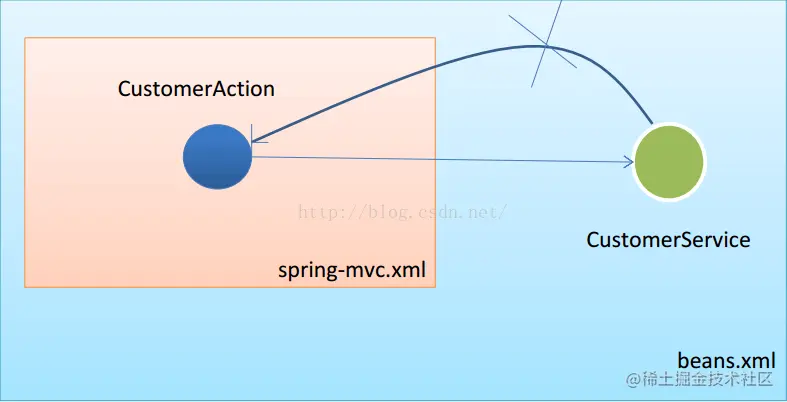 springmvc ioc容器是spring ioc容器的子容器。 SpringMVC的IOC容器中的bean可以来引用 Spring IOC 容器中的 bean. 返回来呢 ? 反之则不行. Spring IOC 容器中的 bean 却不能来引用 SpringMVC IOC 容器中的 bean!多个 Spring IOC 容器之间可以设置为父子关系,以实现良好的解耦。