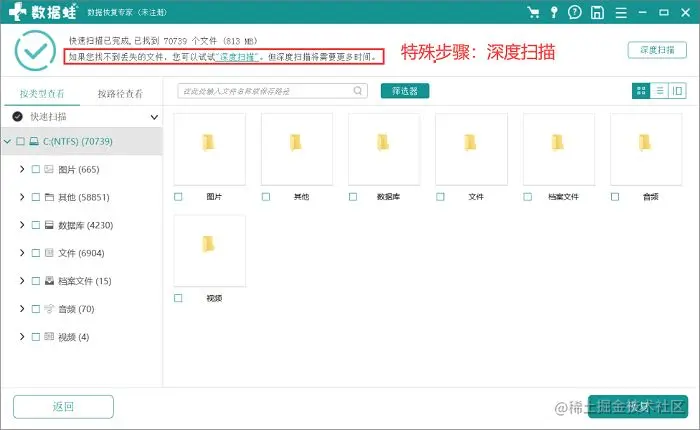 - 第3步:此步骤为特殊情况,第一次扫描出来后,如果没扫描到自己想要的结果的话,可以进行“深度扫描”;