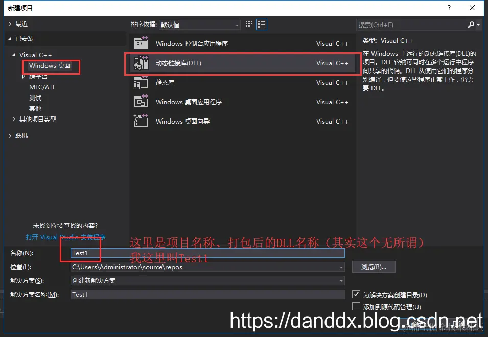 第三步:创建dll动态链接库项目(这里用的是vs2017、怎么安装自行百度)