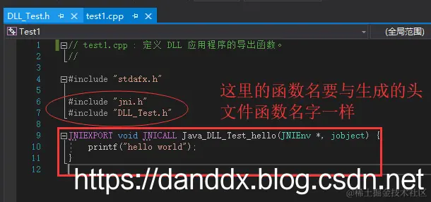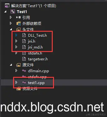 注意:此时还需要导入java的头文件 jni.h jni_md.h