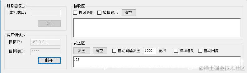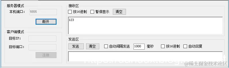 使用测试工具连接本机的 7777端口 在192.168.101.17:5555上接收到数据