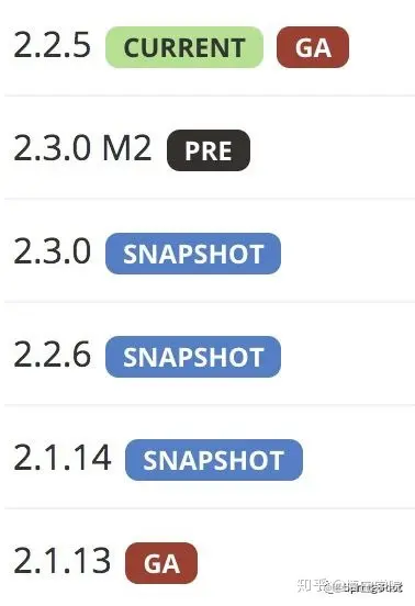 这里只是一个标识,方便大家在使用的时候,进行选择版本,我们一般选择是CURRENT和GA版本,SNAPSHOT打死不选。