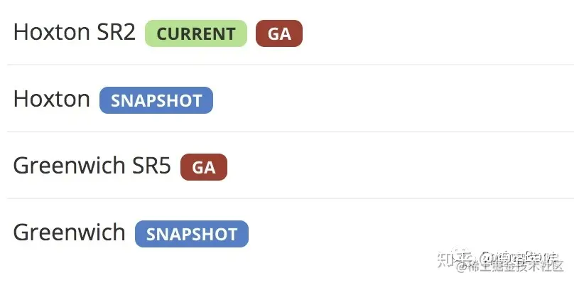 (2)Spring Cloud版本格式:(英文)主版本号.软件阶段版本。
