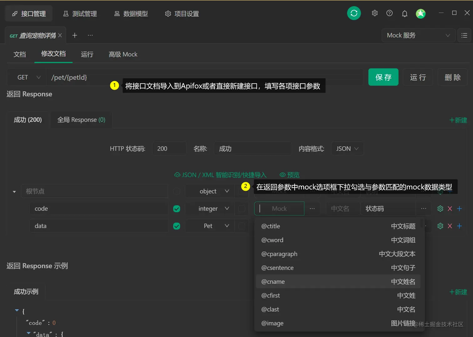 工具简介:Apifox提供了接口设计,调试,测试,管理等功能。我们这里只需要用到它的mock功能。