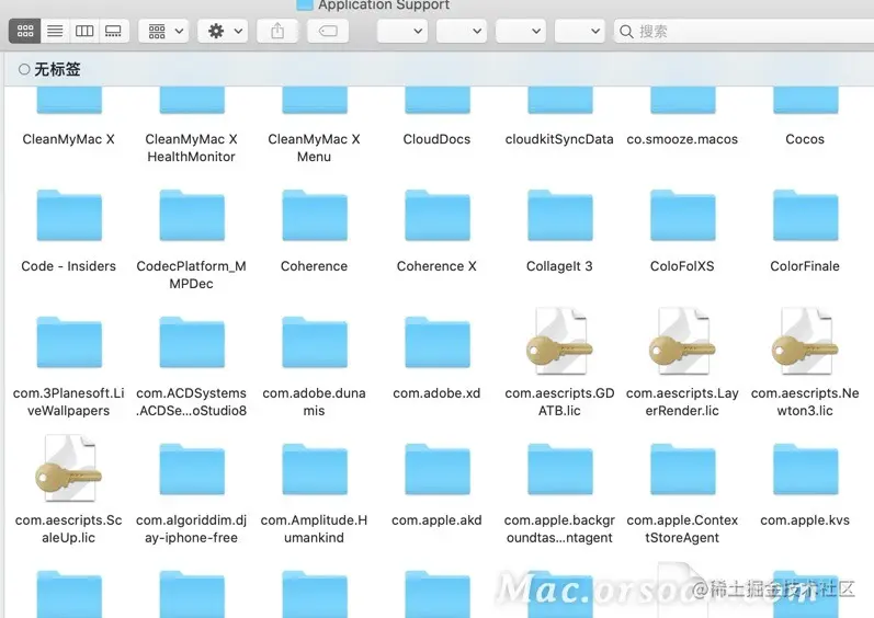 在这几个文件夹下,通常会再以各个 App 的”名字“或者 "App Bundle identifier"(MacOS中APP唯一识别的ID,命名规则通常为 「com.公司名.App名」)命名子文件夹。