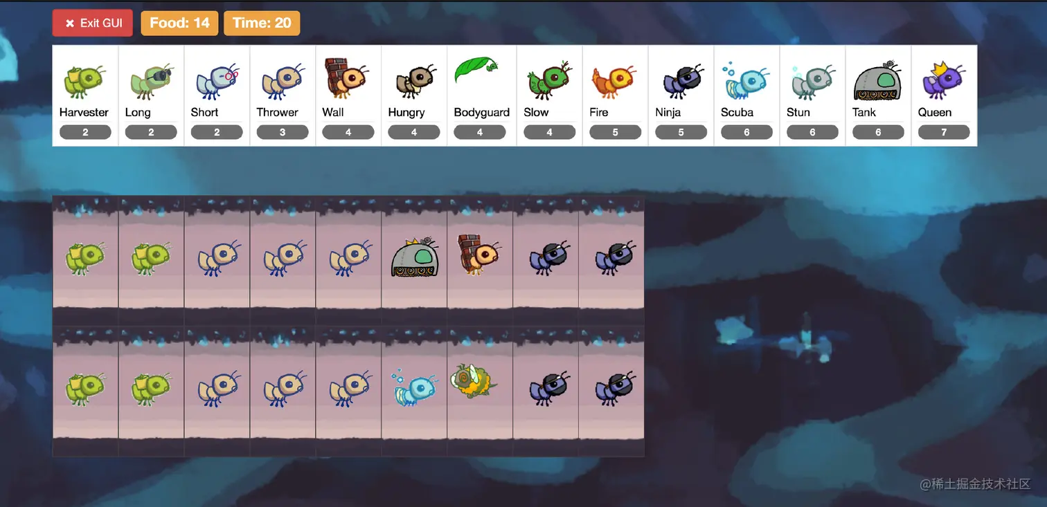 这个项目非常有意思,让我们做一个类似植物大战僵尸的小游戏。只不过这里改成了蚂蚁大战蜜蜂,蜜蜂一波一波来袭,我们要建造各种功能的蚂蚁抵御蜜蜂的进攻。