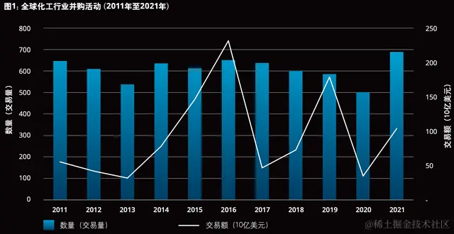 德勤表示,全球化工行业并购数量在2020年创下近十年新低后,在2021年并购数量和交易额超过10亿美元的交易均创近十年新高。其中,美国的化工并购交易量排名最高,并购交易量232起,同比增长36%。