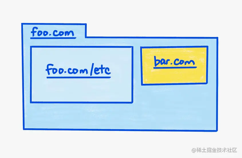 foo.com作为主frame, bar.com作为子frame,而foo.com/etc作为bar.com的子frame。