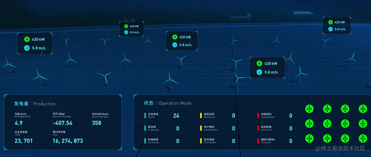 文章将介绍运用SovitJs丰富的2D/3D组态搭建出一个智慧风电场远程集中可视化管理系统。