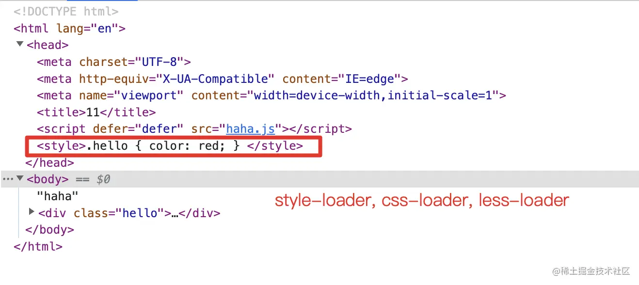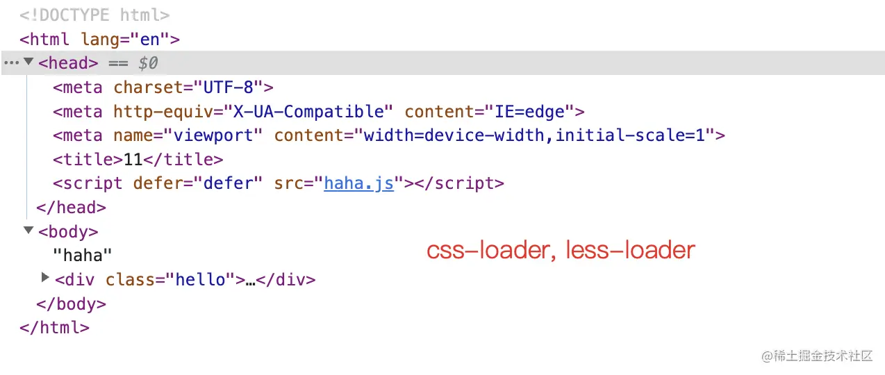- 实际上css-loader对于文件来说确实已经转化好了我们的样式写入js中(可以打包后在产出的js中查看)