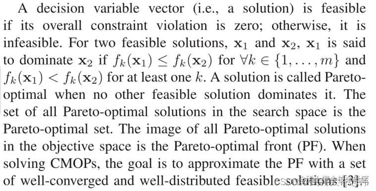 - 首先是一段CMOPs和CMOEAs的解释和定义