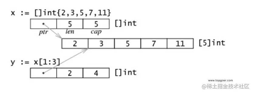 slice(切片,或者叫序列数组)(最常用)map(映射)chan(管道)