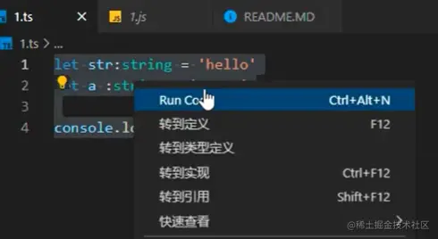 2.快速直接看结果,也可以使用 code runner + npm install ts-node