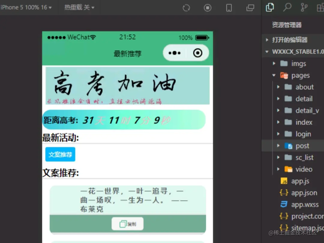 在高考来临之际,我打算开发一款关于高考的小程序,因为我也要参加高考,所以时间不是很富裕。其实3月初就开发了后台,所以做小程序是非常快的。
