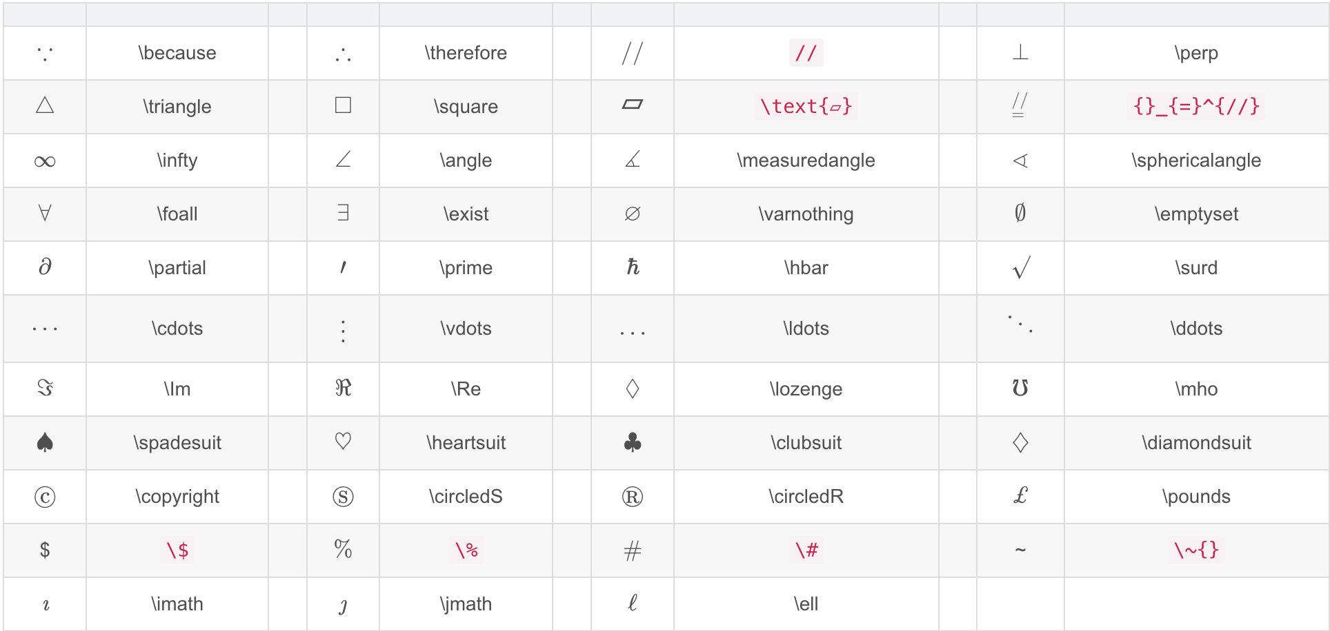 https://artofproblemsolving.com/wiki/index.php/LaTeX:Symbols