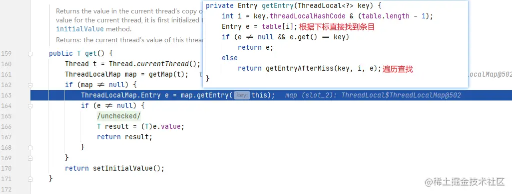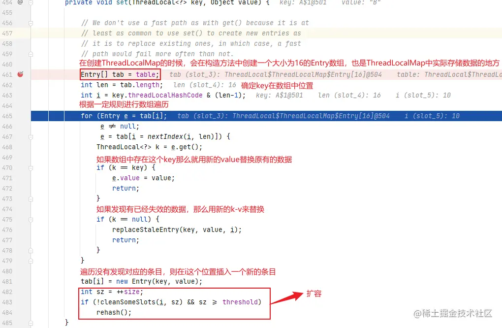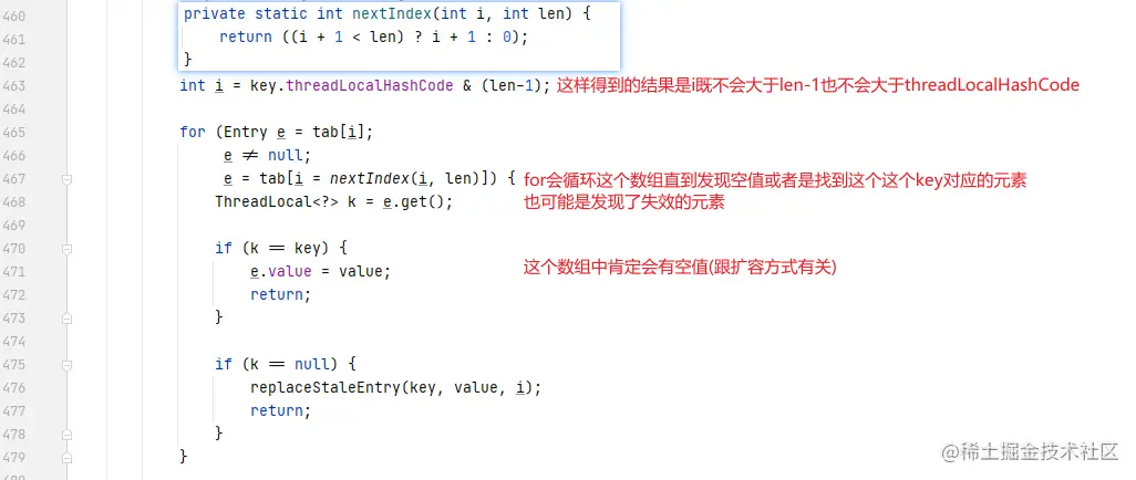 上面是对于相关的threadLocal实例在线程的存储条目数组中的查找,及插入替换方式: