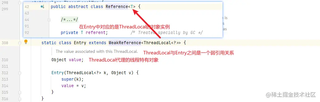 由之前的ThreadLocal源码分析可知,我们将ThreadLocal对象实例和它代理的对象以key-value的方式存入到Thread对应的ThreadLocalMap中,而真正存储这个key-value的是ThreadLocalMap一个的Entry数组,也就是我们会将key-value封装成Entry对象。