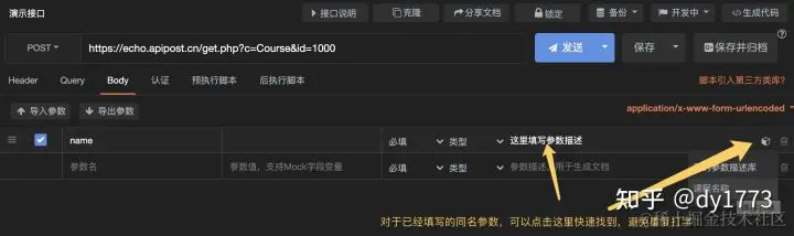 同样,对于已经填写过的参数,APIPOST会自动匹配描述,不用重复填写。