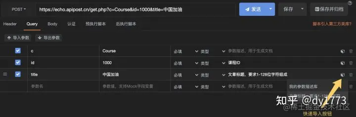 我们也可以通过导入参数描述功能,将数据库定义的字段注释快速导入到APIPOST的参数描述库中。