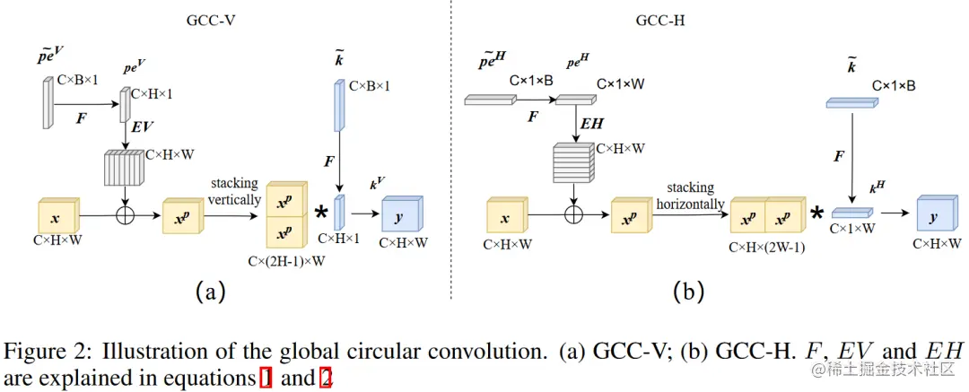提出一个全局循环卷积(Global Circular Convolution,GCC)操作来提取全局特征从而改善传统卷积操作的有限的感受野。其中,基于实例的卷积核(这里想说的应该是卷积核的参数与输入相关)和位置嵌入策略分别被用来应对输入尺寸的变化,并且向输出特征图中注入位置信息。